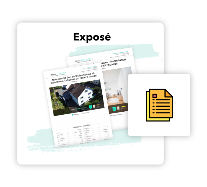 Nachweislich erhält ein modernes & professionelles Exposé mehr Kaufanfragen. Wir setzen Ihre Immobilie ins optimale Licht, bestücken das Exposé mit den wichtigsten Informationen und reichern dieses zusätzlich mit bspw. 2D- oder 3D-Grundrissen an. Wir geben also die wichtigsten Infos mit, dass führt zu höchstem Interesse der Leserschaft.